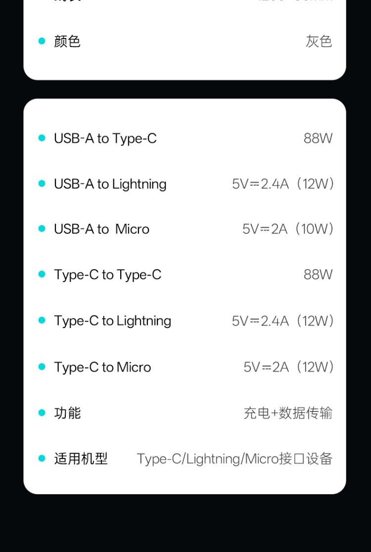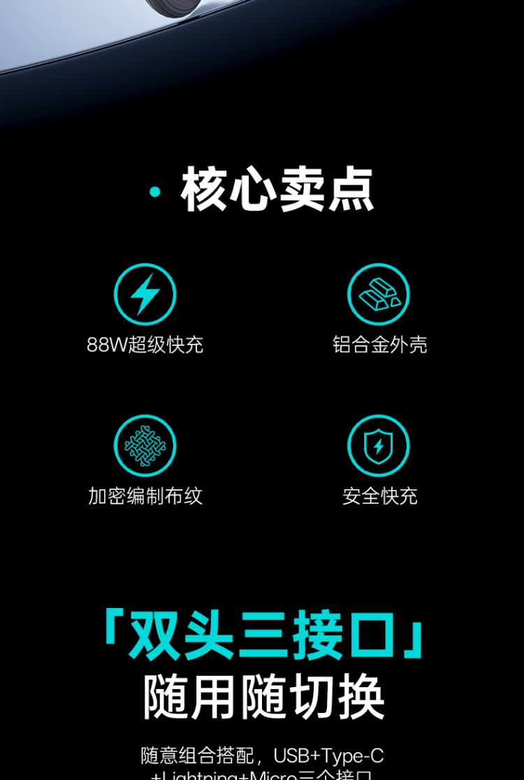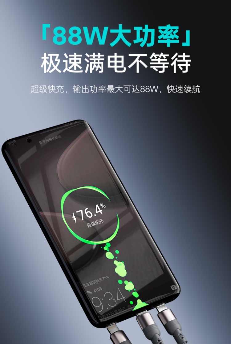 產品尺寸: 線長1.2M 包裝尺寸:70*175*25mm 產品重量:50.2g 接口:蘋果、安卓、TYPE_C接口的設備 適用:Apple/Micro/Type-c接口手機/平板電子設備 顏色:粉色、藍色 材質:鍍錫銅+纖維絲 絕緣外皮PE+PP料 PVC外被 紅色/黑色編織 華為顯88W超級快充 過3A電流  外觀簡約時尚 鋁合金外殼 堅固耐用 加密編制