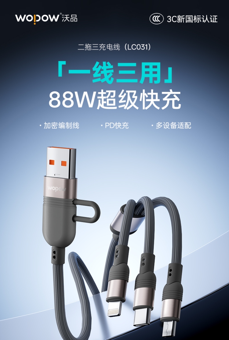 二拖三充電線LC031 禮品已成功加入PPT!