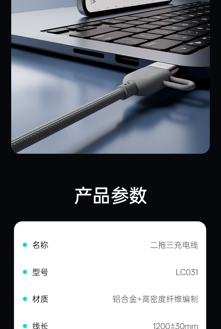 二拖三充電線LC031 二拖三充電線LC031