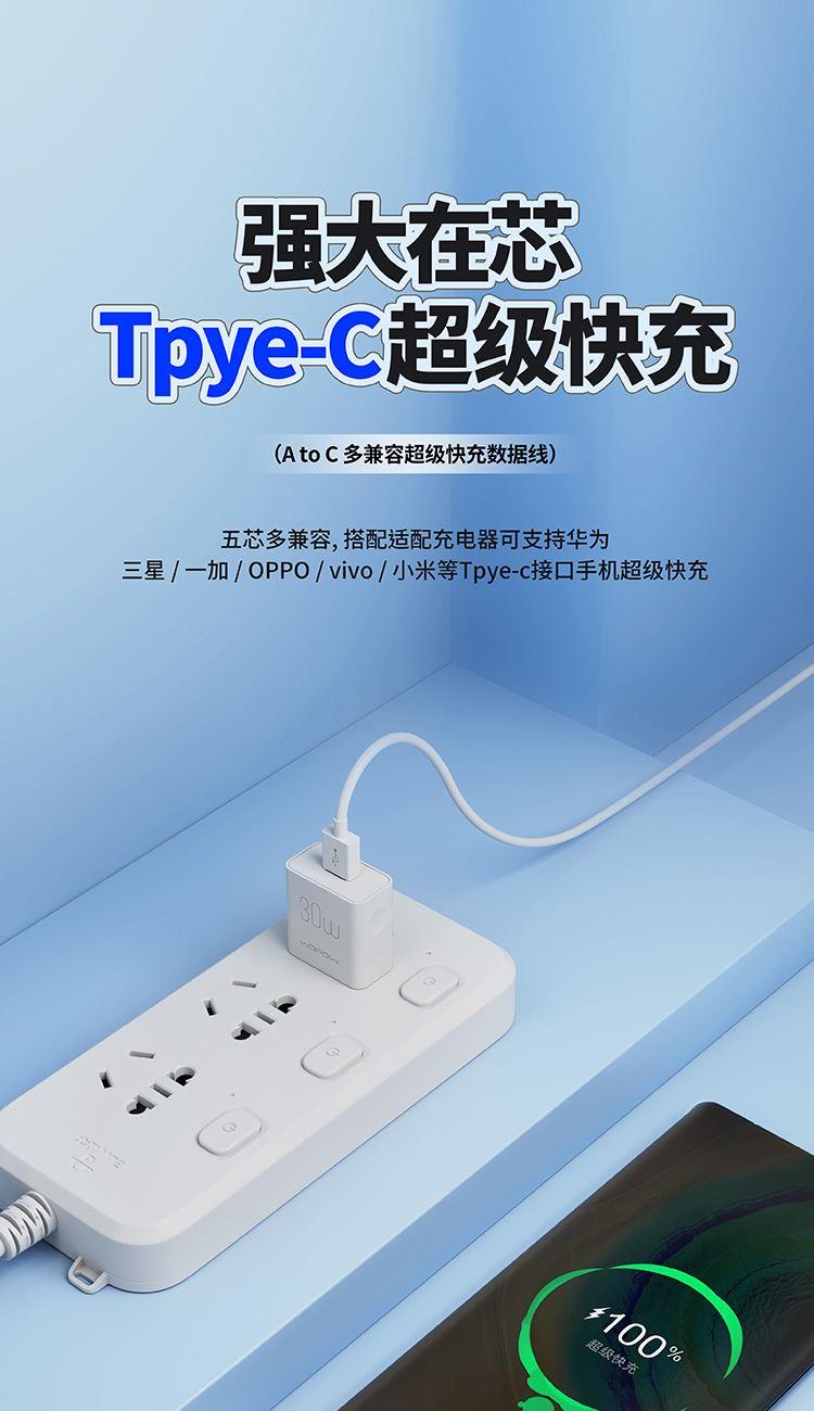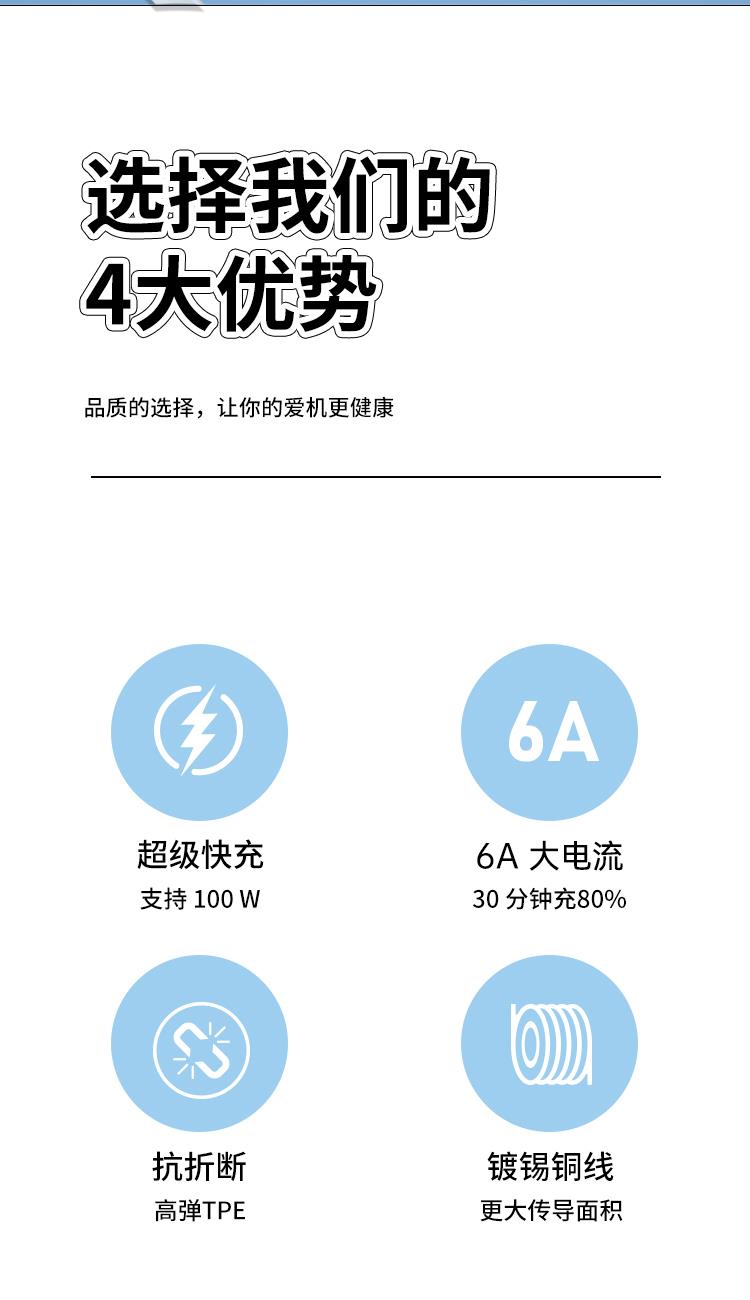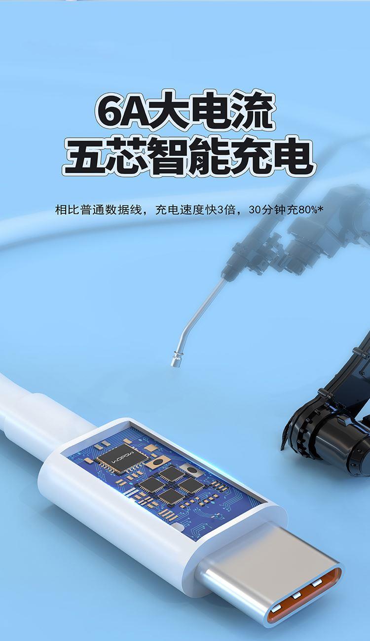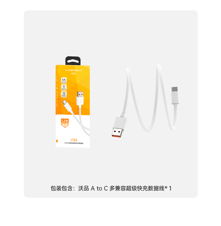 產品尺寸: 線長1.2M 包裝尺寸:70*175*24mm 產品重量:22g 接口:TYPE_C接口的設備 適用:Type-c接口手機/平板電子設備 顏色:白色 材質:TPE+ABS 五芯多兼容,搭配適配充電器可支持華為、三星、一加、OPPO、vivo、小米等手機超級快充。 真6A不虛標。優質鍍錫銅,充電更快,溫度更低。 一體成型工藝加長網尾,久用不斷裂。 優質親膚高彈TPE,潔凈抗污不發黃