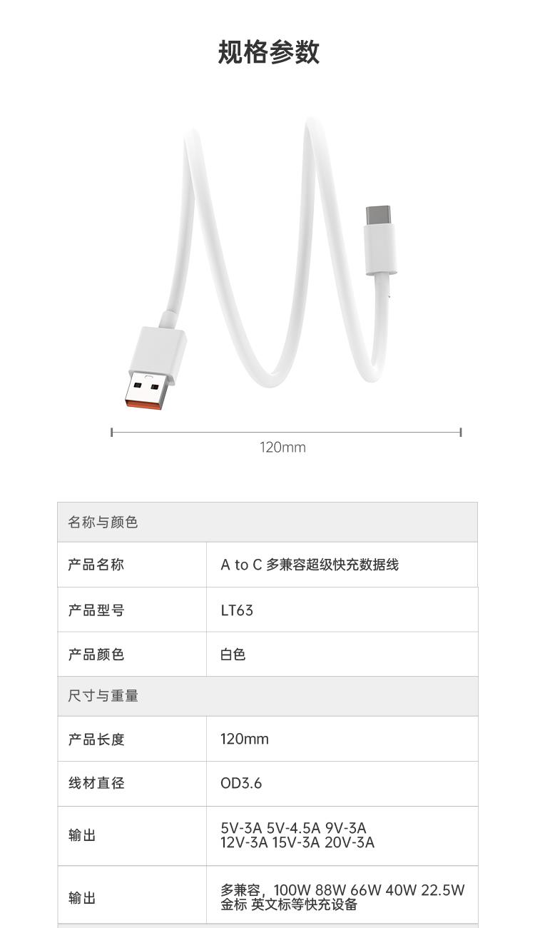 AtoC多兼容超級快充數據線LT63 AtoC多兼容超級快充數據線LT63
