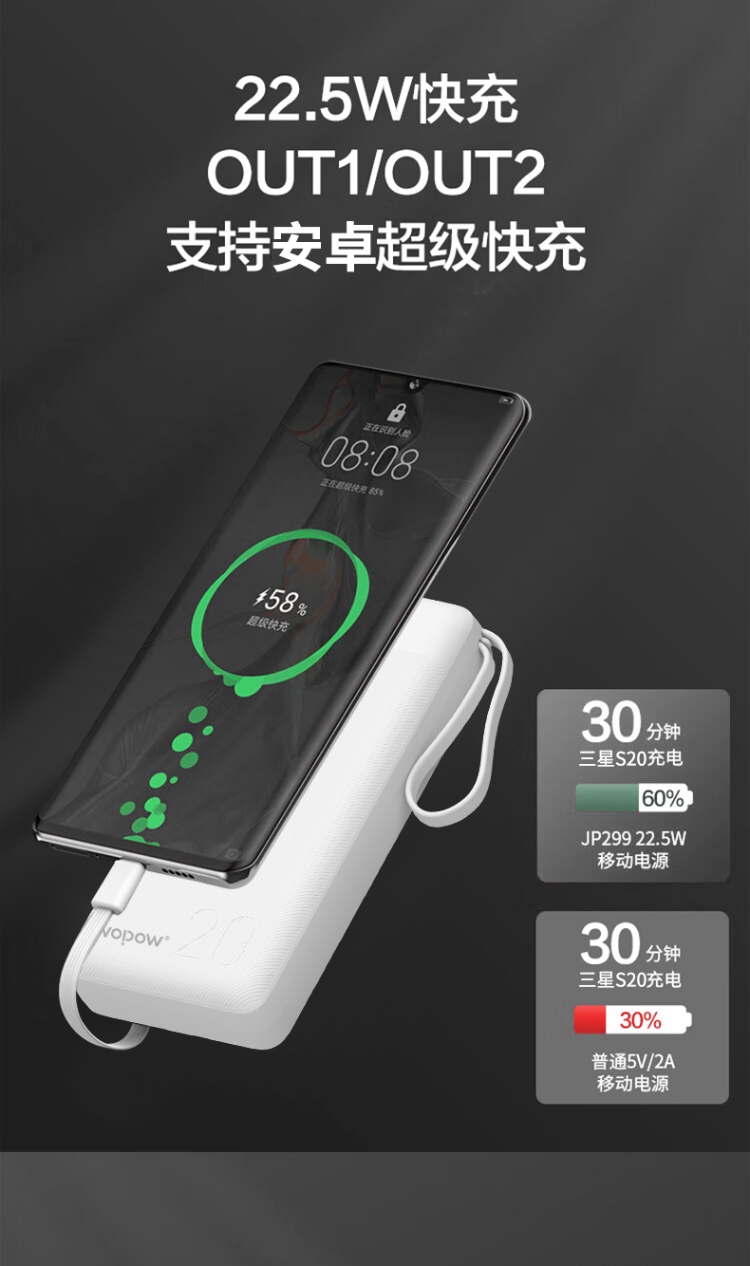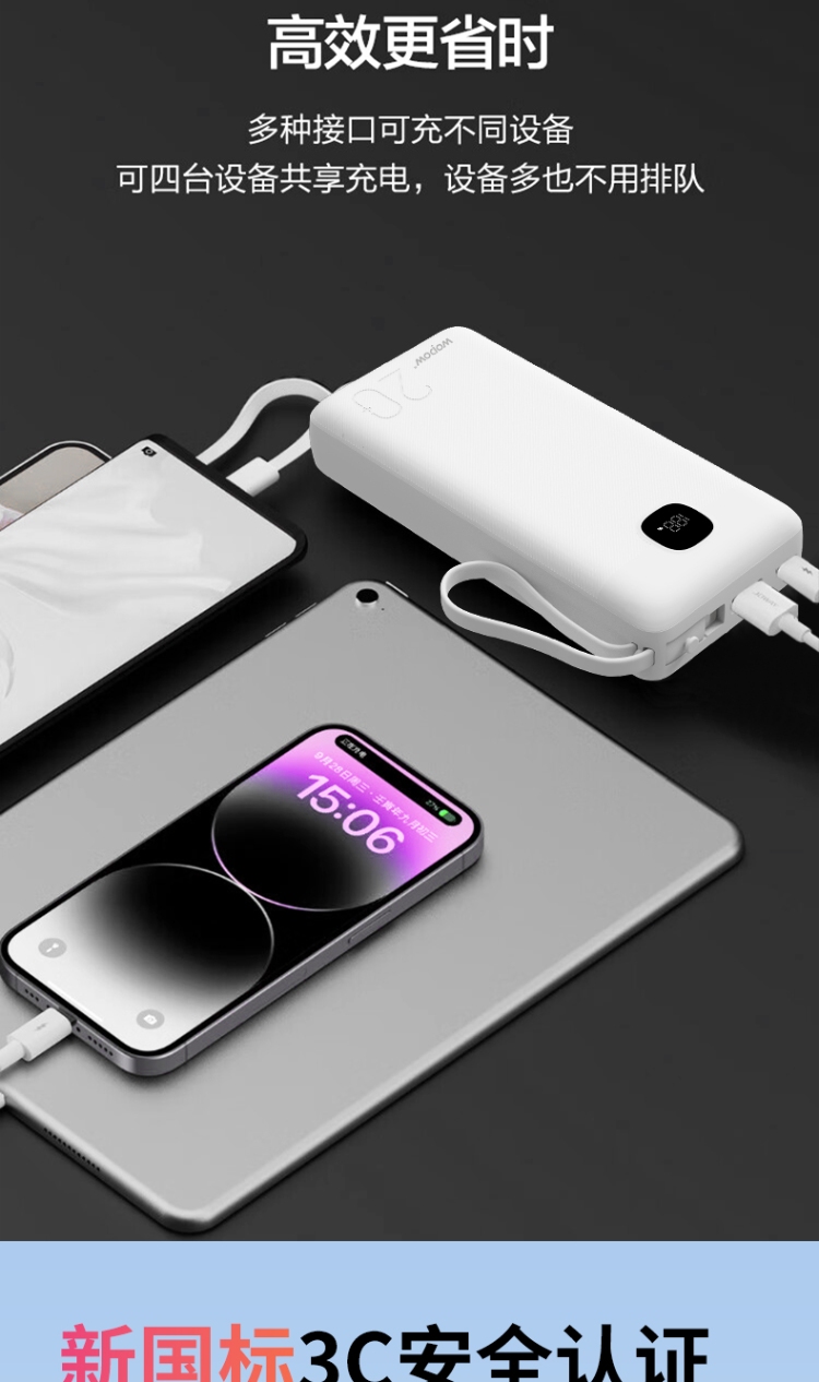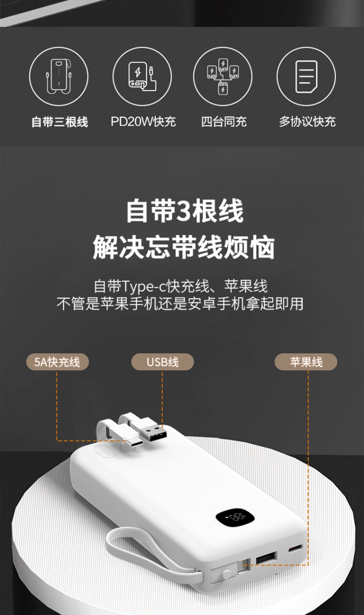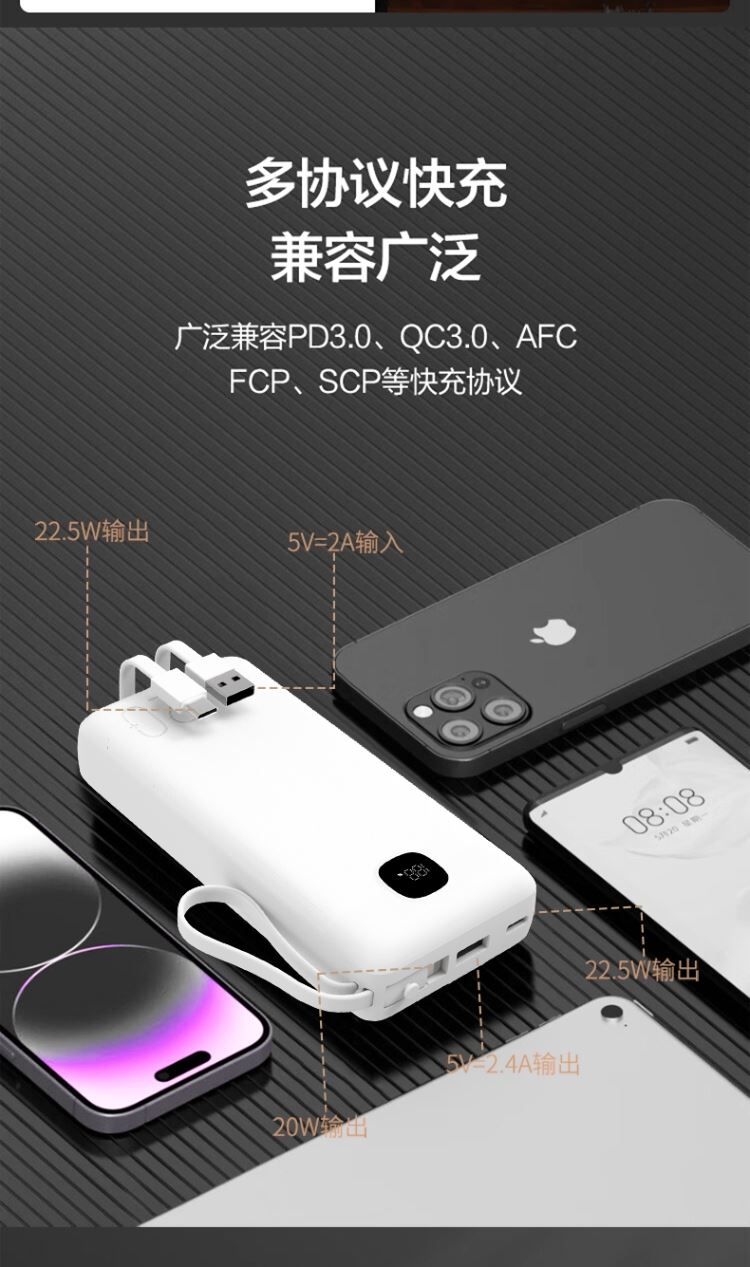 自帶三線22.5W快充移動(dòng)電源LQ05